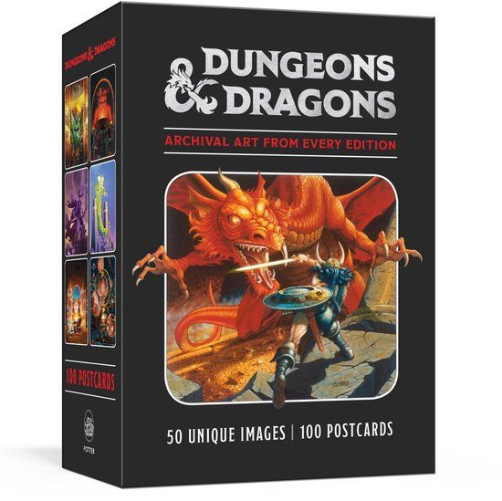 This officially licensed postcard set features some of the most iconic art from the vast Dungeons & Dragons archive. With 50 pieces of art that each repeat for a total of 100 postcards, this is the ultimate collector’s set that will take you back to the first time you opened a D&D book.